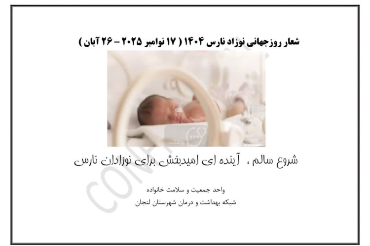 همزمان با فرارسیدن۲۶ آبان، روز جهانی نوزاد نارس، کمیته درونبخشی گرامیداشت این مناسبت در شبکه بهداشت و درمان شهرستان لنجان تشکیل جلسه داد. این نشست که در تاریخ ۲۴ آبان ماه ۱۴۰۴ برگزار شد، با حضور سرپرست شبکه بهداشت ، معاون بهداشت، مسئولین واحدهای مرتبط و کارشناسان سلامت کودکان همراه بود. در این جلسه، شعار امسال روز جهانی نوزاد نارس با عنوان «شروع سالم، آیندهای امیدبخش برای نوزادان نارس» اعلام شد. شرکتکنندگان با محوریت این شعار، به بررسی و تعیین فعالیتها و مصوبات لازم در راستای مراقبت از نوزادان نارس و پیشگیری از مرگومیر این نوزادان پرداختند.