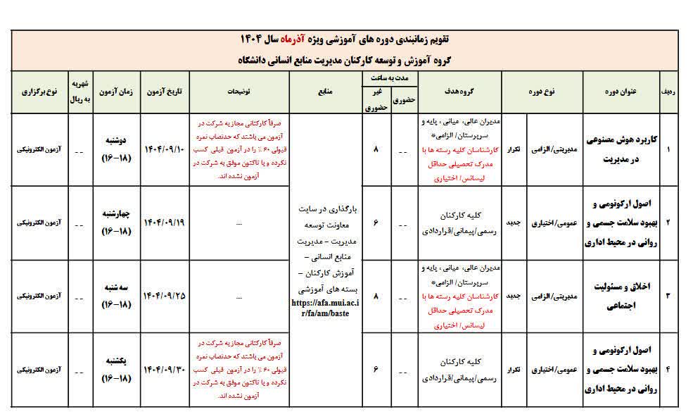🔰تقویم زمانبندی دوره های آموزشی (ویژه آذر ماه ۱۴۰۴) تقویم زمانبندی دوره های آموزشی (ویژه آذر ماه ۱۴۰۴)