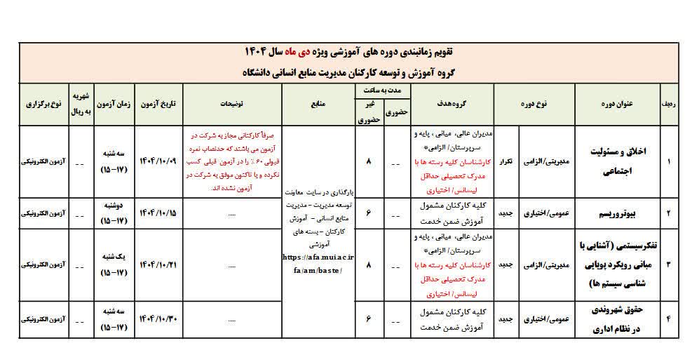 تقویم زمانبندی دوره های آموزشی 🔰(ویژه دی ماه ۱۴۰۴) گروه آموزش و توسعه کارکنان مدیریت منابع انسانی دانشگاه