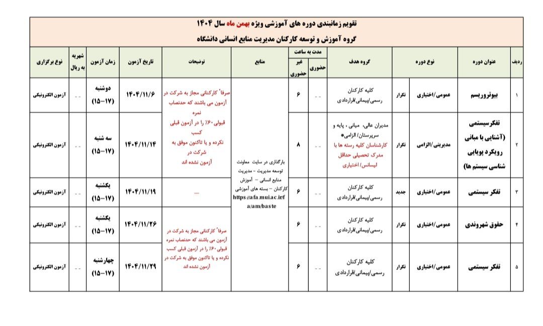 تقویم آموزشی بهمن ماه ۱۴۰۴